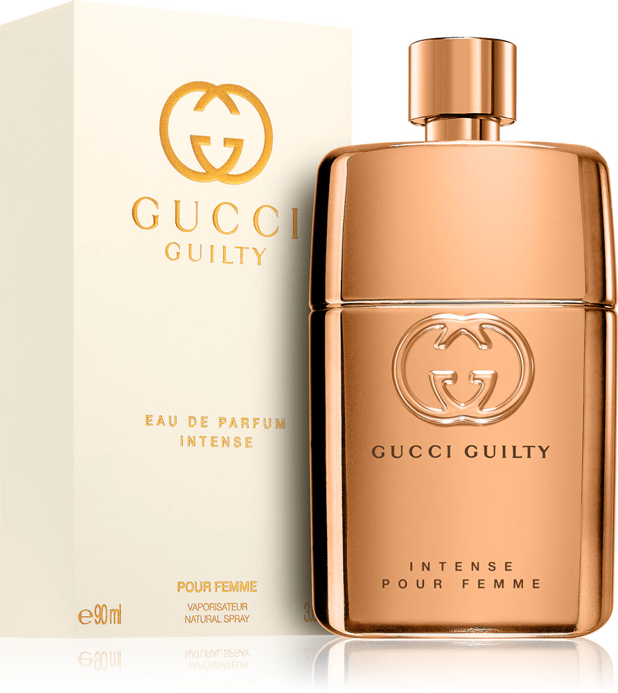 Gucci Guilty Intense הוא בושם נשי שממשיך את הסיפור של קודמו – סיפור של שני אנשים הקשורים באהבה בלתי קונבנציונלית, חופשית וטבעית לחלוטין. אהבה שחיה לפי החוקים שלה עצמה. הקומפוזיציה האינטנסיבית יותר מעבירה את המסר באופן חזק ומשכנע עוד יותר.